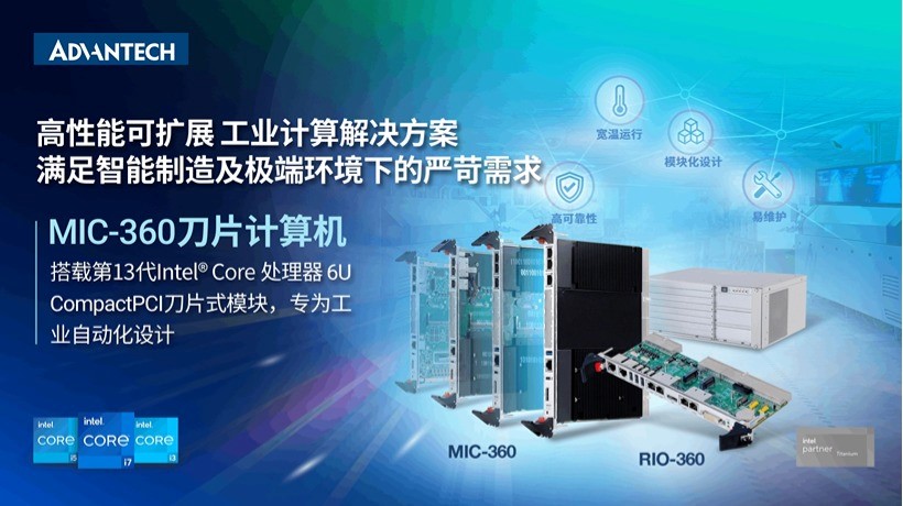 中国上海,2025 年2月 – 研华科技正式发布新一代刀片服务器MIC-360,一款基于第13代Intel® Core™处理器(代号Raptor Lake-P)的6U CompactPCI(CPCI)刀片服务器。MIC-360专为严苛工业场景设计,集高性能、灵活性与工业级可靠性于一体,满足智能制造与极端环境下的严苛需求,为智能制造、机器视觉、加固计算及医疗诊断等领域提供强劲算力支持。