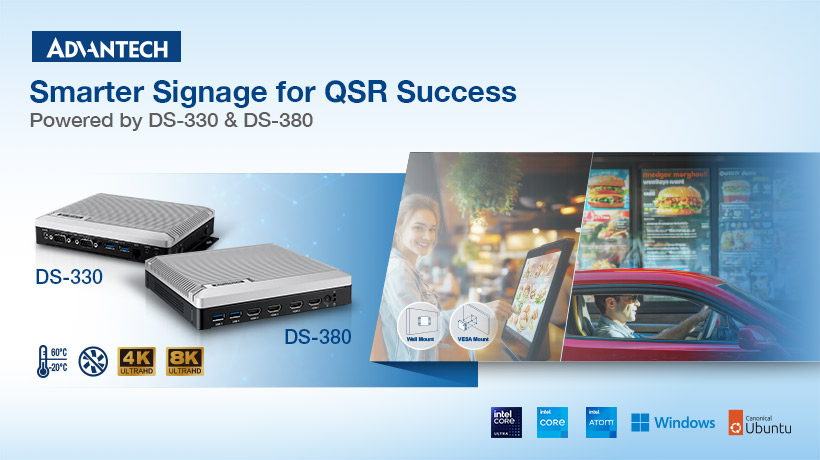 搭载高效节能的英特尔® 酷睿™ x7433RE 处理器,DS-330 可在紧凑型无风扇设计中实现三屏 4K 内容输出。其坚固耐用的工业级设计可在 -20°C 至 60°C 的温度范围内稳定运行,并支持 12–24V 宽电压输入,因此非常适合户外菜单显示屏、交通信息亭及零售场景。