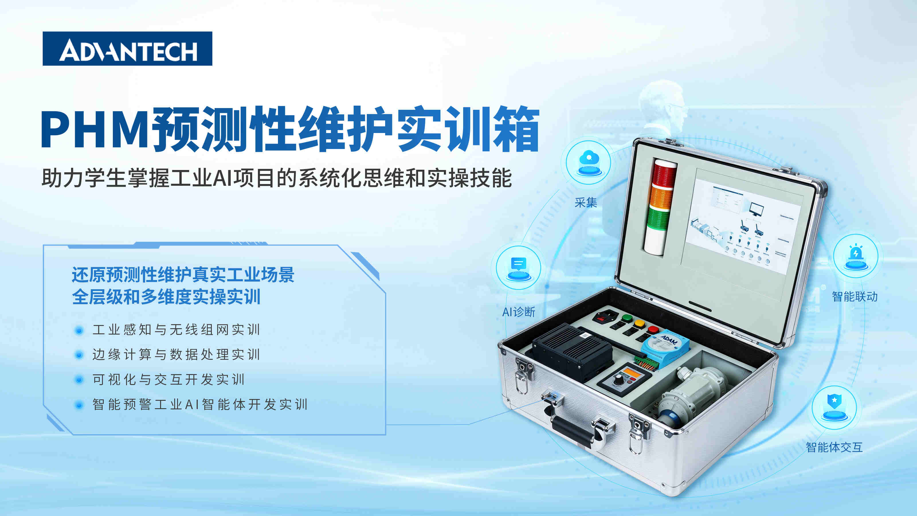 研华推出PHM预测性维护实训箱,助力学生掌握工业AI项目的系统化思维和实操技能。它支持从基础硬件配置、工业 AI 开发到智能诊断的全流程层级实训,适用于物联网、智能制造、自动化、人工智能等相关专业的人才培养。