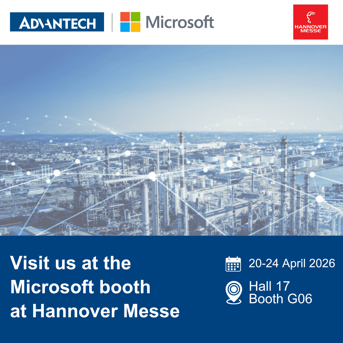 Advantech invites industry partners and customers to visit Microsoft in Hall 17, Stand G06 at Hannover Messe to explore how Advantech’s industrial hardware portfolio works alongside Microsoft’s adaptive cloud and industrial AI capabilities to help manufacturers transform operational data into actionable insights.