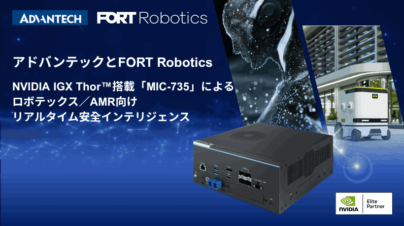 2026年3月17日、Advantech Co., Ltd(台湾、TWSE: 2395、以下 アドバンテック)は、近日発売予定のNVIDIA IGX™ T5000を搭載したMIC-735の発売を控え、エッジAI製品ラインアップをさらに拡充することを発表しました。本製品はNVIDIA IGX Thor™ プラットフォームを基盤とし、高速センサ処理、エンタープライズクラスの高信頼性、そして機能安全を融合させることで、リアルタイムなフィジカルAIをエッジで実現します。 ミッションクリティカルな現場要件に対応するため、アドバンテックはNVIDIA Halos AI Systems Inspection Labに参画し、FORT Robotics(以下「FORT」)と連携して同社の組込み型安全アーキテクチャをMIC-735に統合しました。NVIDIA® は機能安全、サイバーセキュリティ、AI、規制要件を統合した世界初のANAB認定AI Systems Inspection Labを運営しており、本協業により、ロボットやAMR向けアプリケーションで高信頼かつSIL認証レベルの制御が可能になります。