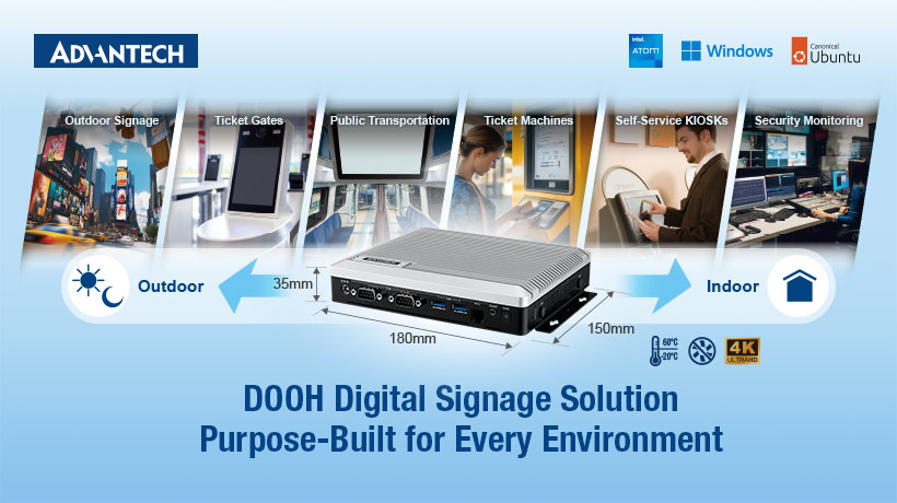 台北,2025年7月28日 —— 全球领先的AIoT平台与服务提供商研华科技(股票代码:2395,TW)今日正式发布DS-330无风扇数字标牌播放器。这款紧凑型设备搭载Intel Atom x7000系列处理器,具备超清4K输出与极端环境耐受能力,专为智慧城市基础设施设计,可广泛应用于无人售货亭、交通枢纽、户外广告牌及公共视频墙等场景。