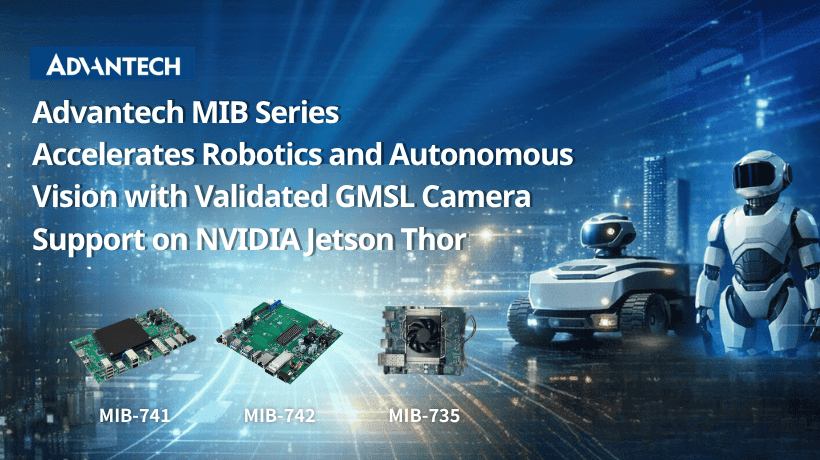 Advantech, a global leader in edge AI and industrial computing, today announced that its high-performance board-level MIB series powered by NVIDIA Jetson T4000, NVIDIA Jetson T5000, and NVIDIA IGX T5000 modules including MIB-741, MIB-742, and MIB-735, has been fully tested and validated for GMSL (Gigabit Multimedia Serial Link) camera integration. This validation confirms stable, reliable GMSL camera operation across Advantech’s portfolio powered by NVIDIA Jetson Thor, enabling robotics and autonomous vision developers to deploy production-ready AI perception systems with confidence.