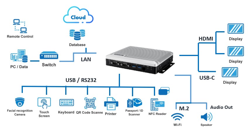 DS-330已广泛应用于机场、商场、医院及交通网络,为票务系统、自助登记、智能点餐及信息显示等新一代自助终端提供算力支撑。其紧凑机身可轻松集成至纤薄机柜,丰富接口支持完整外设生态,实时后台同步与远程维护功能助力运营商实现无忧扩展。